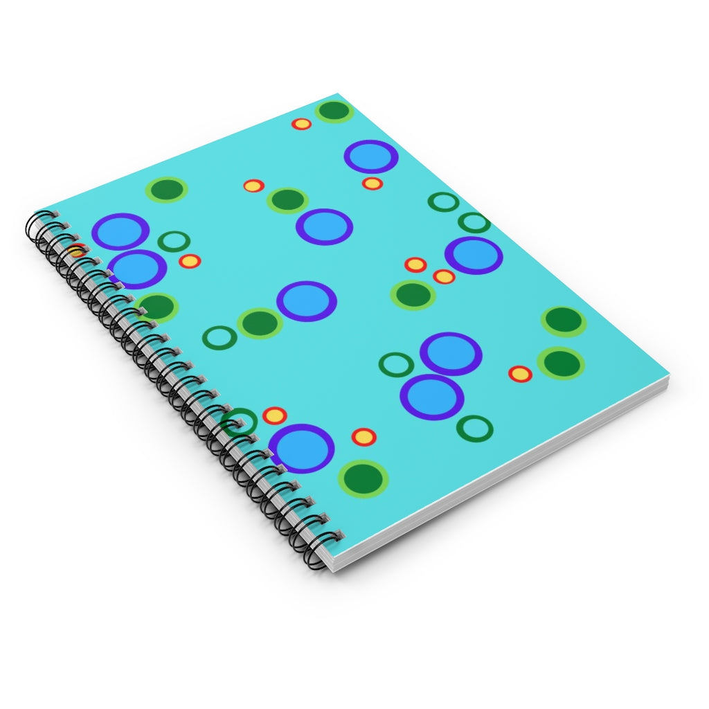 The blue bubbles spiral notebook is a colorful addition to use for school, shopping lists, or a place to write down thoughts or ideas. This 118 page notebook is line ruled and also available in green or orange bubbles.